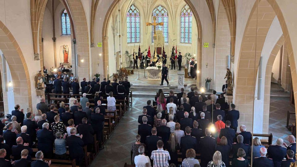 Der Kreisfeuerwehrverband Aschendorf-Hümmling e.V. hat am vergangenen Wochenende in Lathen sein 75-jähriges Bestehen gefeiert. Rund 300 geladene Gäste aus Feuerwehr, Politik und weiteren Blaulichtorganisationen kamen im „Markt 7“ zusammen. Eröffnet wurden die Feierlichkeiten mit einem ökumenischen Gottesdienst, der von der Kolpingkapelle Lathen musikalisch begleitet wurde. Im Anschluss führte ein großer Festmarsch von der Kirche zum Veranstaltungsort. Die Feuerwehr Lathen sorgte für die Absicherung, während die Jugendfeuerwehr den Umzug mit einem stimmungsvollen Fackelmarsch begleitete.