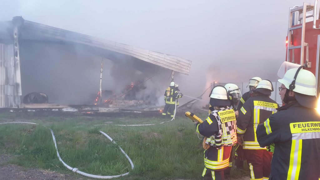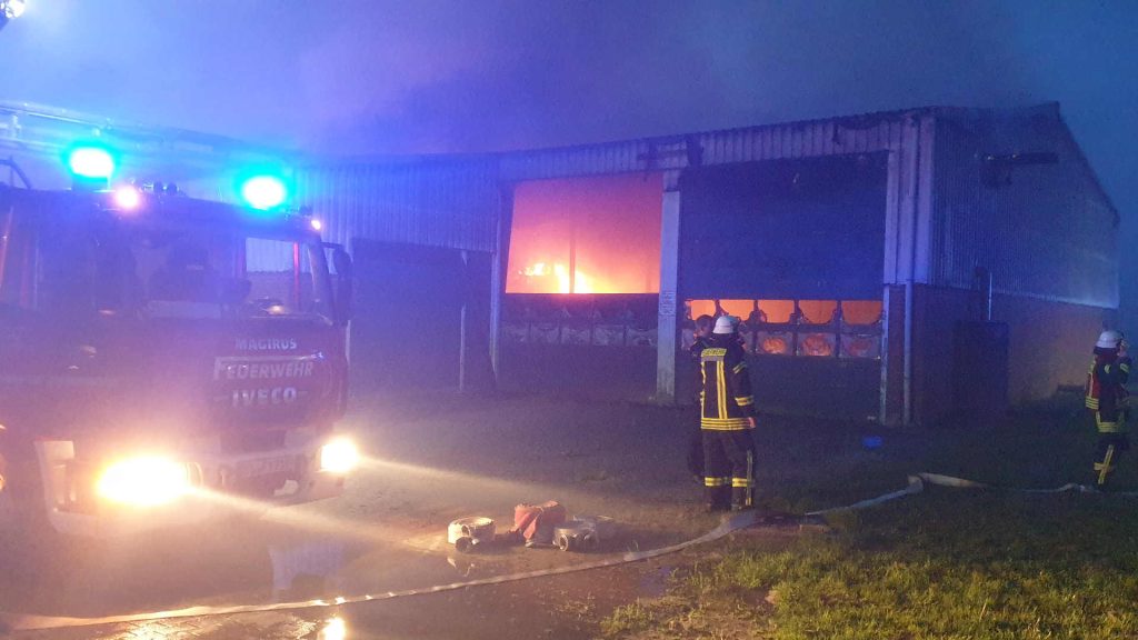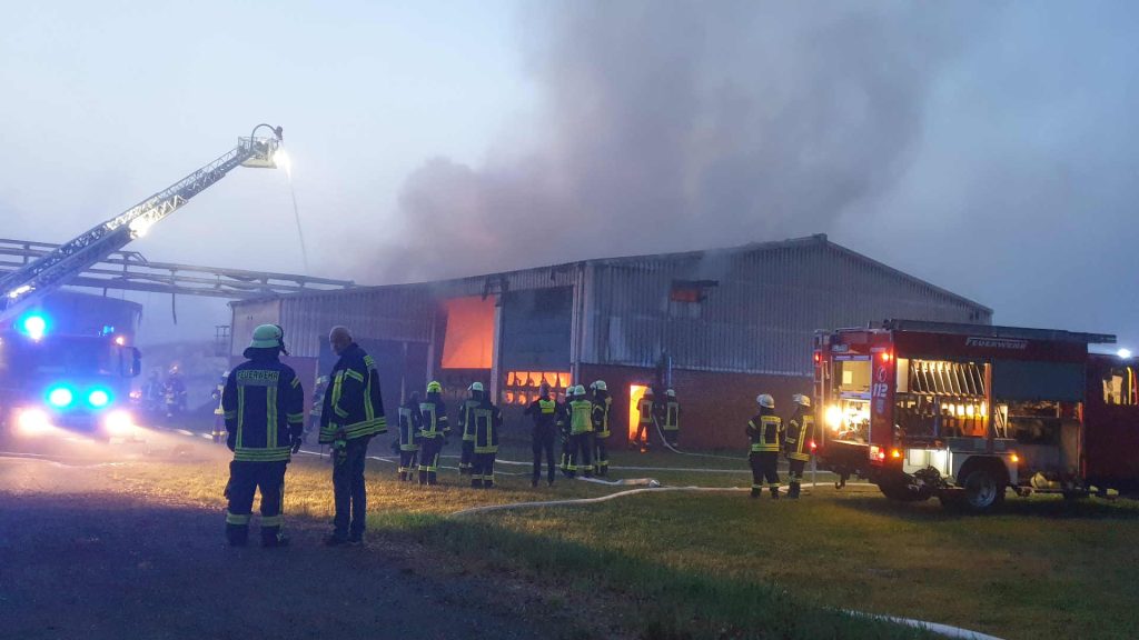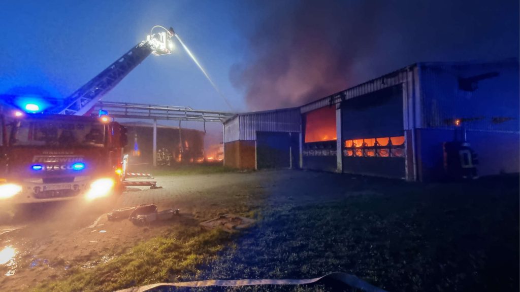 Surwold: Gegen viertel vor fünf am Mittwochmorgen wurde ein Brand in einer Lagerhalle an der Industriestraße gemeldet. Dort sei eine Halle, die von der Johannesburg GmbH für Maschinen genutzt werde, aus noch ungeklärter Ursache in Vollbrand geraten, wie die Polizei meldet. Mehrere Medien berichten übereinstimmend, dass auch eine Biogasanlage beschädigt worden sein soll, jedoch lediglich mit geringen Schmelzschäden. Der Gesamtschaden belaufe sich laut ersten Schätzungen auf 500.000€, möglicherweise sogar bis zu einer Million Euro. Auch sei die Warnapp NINA eingesetzt worden, um die Bevölkerung vor der Rauchentwicklung zu warnen und darauf hinzuweisen, das Gebiet zu meiden.