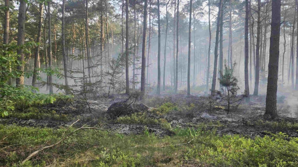 Spahnharrenstätte: Am heutigen Mittwochmorgen wurden gegen 8:03 Uhr die Ortsfeuerwehren Spahnharrenstätte und Börger zu einem Waldbrand alarmiert. Vor Ort stellte der Einsatzleiter eine Fläche von circa zwei Hektar fest, die im Unterholz brannte.