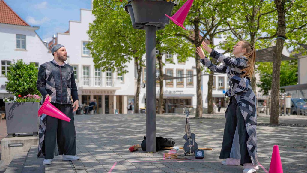 Die Theater-Performance findet am Samstag, den 28. Juni, um 11:30 Uhr, 12:30 Uhr, 14:30 Uhr und 15:30 Uhr in der Lookenstraße (Höhe Volksbank) in Lingen statt. Die Aufführung dauert etwa 15 Minuten und ist „umsonst und draußen“. Eine Anmeldung ist nicht erforderlich.