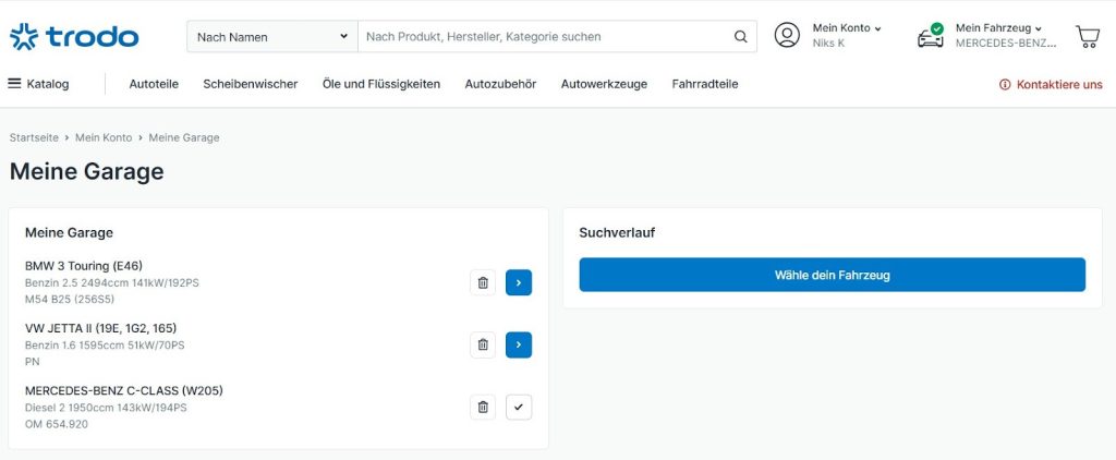 Wer die Wartung seiner Fahrzeuge selbst in die Hand nimmt, weiß: Ordnung ist das halbe Leben. Die Funktion „Meine Garage“ bei TRODO fungiert als Ihr persönlicher digitaler Assistent. Anstatt bei jeder Suche erneut mühsam Daten einzugeben, speichern Sie Ihre Fahrzeuge einfach dauerhaft in Ihrem Benutzerkonto ab.