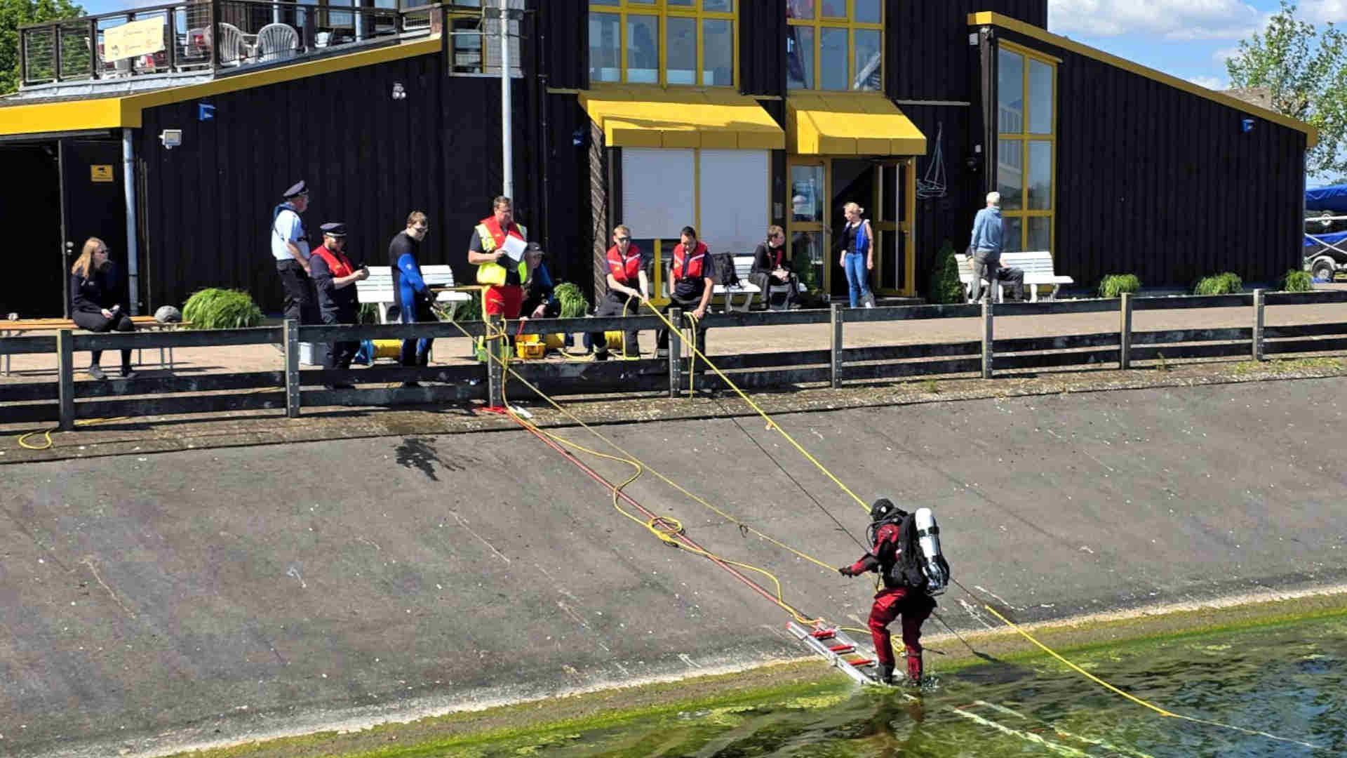 Für die drei Feuerwehrtaucher hatte die Prüfungskommission verschiedene praktische Übungen vorbereitet. Von einer Plattform ging es direkt auf den Grund des Speicherbeckens. Der Ab- und auch der Aufstieg müssen sehr sorgfältig durchgeführt werden, da ein zu schnelles Ab- bzw. Aufsteigen zu schweren körperlichen Schäden führen kann. Dort musste ein Objekt in ca. 15 Meter Wassertiefe mittels Leinensuchverfahren gefunden werden. Das Objekt war dann an Land zu bemaßen und im Detail zu beschreiben. An einer weiteren Station mussten die Feuerwehrtaucher ein Eisenrohr mit einer Säge unter Wasser zerteilen. Auch die Rettung verunfallter Taucher sowie der eigene Notaufstieg waren Bestandteil der praktischen Prüfung.