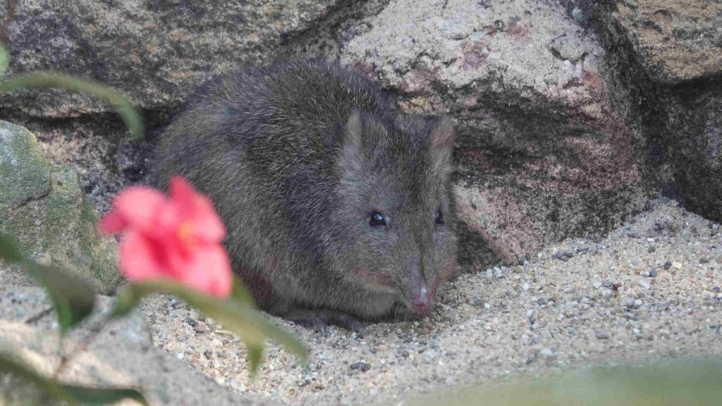 Die beiden Langschnauzen-Kaninchenkängurus, die die Tierpfleger Billy und Willa getauft haben, leben im Zoo Osnabrück in einer Voliere direkt gegenüber vom Eingang des Tetra-Aquariums. Diese teilen sie sich mit verschiedenen Vogelarten: Spitzschwanzamadinen, Binsenastrilden sowie Australischen Spitzschopftauben. „Sie mussten sich kurz an ihre neuen Mitbewohner gewöhnen, aber insgesamt haben sie sich hier schon toll eingelebt“, freut sich Revierleiterin Kirsten Bischoff. „Die beiden sind noch etwas scheu, aber trauen sich immer mehr aus ihren Rückzugsmöglichkeiten heraus.“ Generell sind Langschnauzen-Kaninchenkängurus nachtaktiv. Sie sind braun-grau, haben eine lange Nase sowie einen langen Schwanz und erinnern vom Aussehen an große Ratten. „Auch wenn sie erst unscheinbar wirken, sind es wirklich spannende Tiere“, so Bischoff. „Sie können zum Beispiel sowohl auf vier Beinen laufen als auch auf den Hinterbeinen hüpfen.“ Dabei können sie Geschwindigkeiten von bis zu 25 Stundenkilometern erreichen. Insgesamt gibt es vier Arten in der Familie der Kaninchenkängurus, von denen eine allerdings bereits ausgestorben ist. Zwei weitere sind stark gefährdet. Das Langschnauzen-Kaninchenkänguru ist im Vergleich zu den anderen Arten in seiner Familie noch häufiger vertreten, aber auch seine Bestände nehmen ab. Besonders die extremen Brände in den letzten Jahren haben die Bestände schrumpfen lassen und teilweise die Populationen voneinander isoliert.
